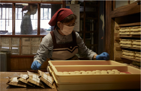 昔と変わらぬ餅を茶屋にてお出ししながら